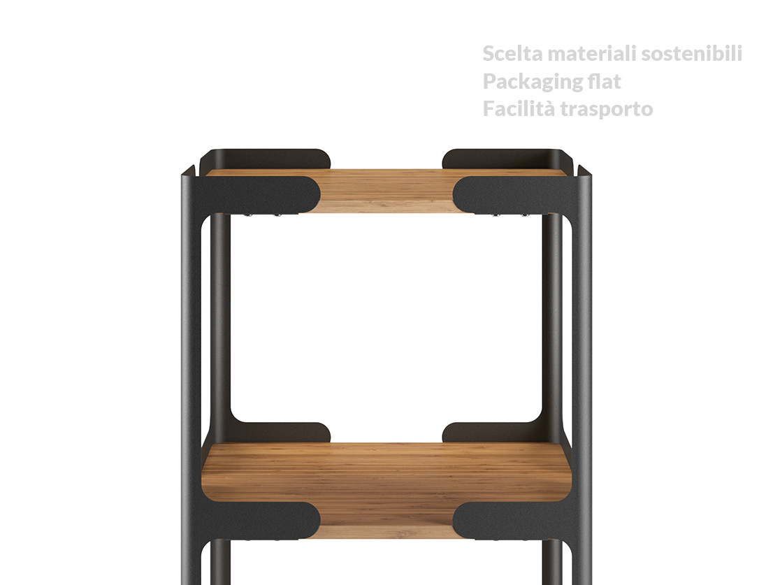 Attenzione particolare è stata posta alla sostenibilità dei prodotti e ai relativi processi produttivi. Utilizzo di materiali sostenibili, facilità di trasporto dettati dallo studio di un packaging flat.
